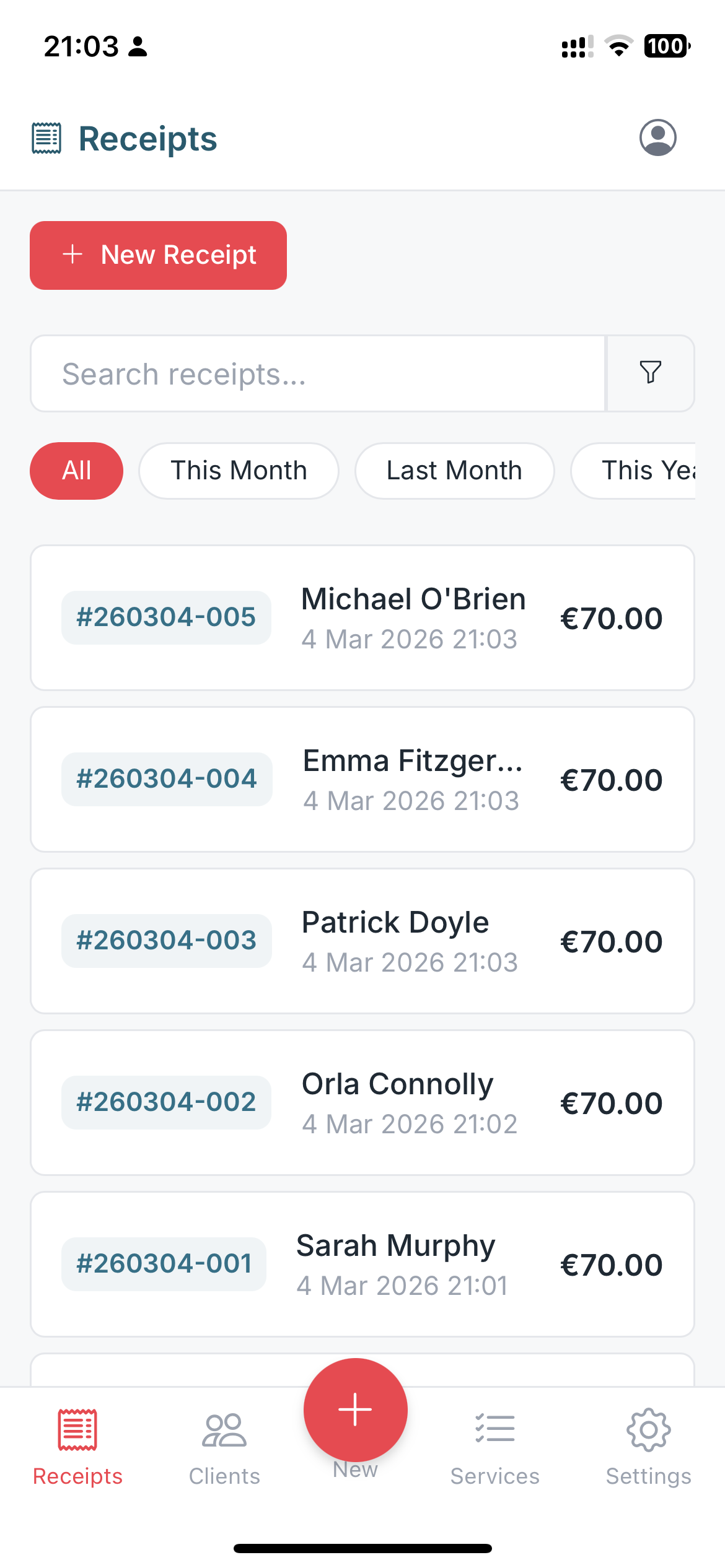 So I built a small tool that did exactly what she needed. Create a receipt, send it to the client, and keep a record for tax time.